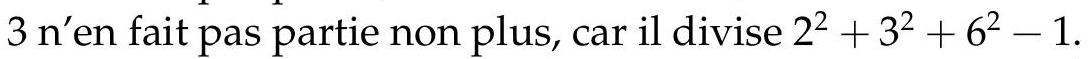 ❓:Determine all strictly positive integers that are coprime with all numbers of the form 2^{n}+3^{n}+6^{n}-1, for n a natural number.